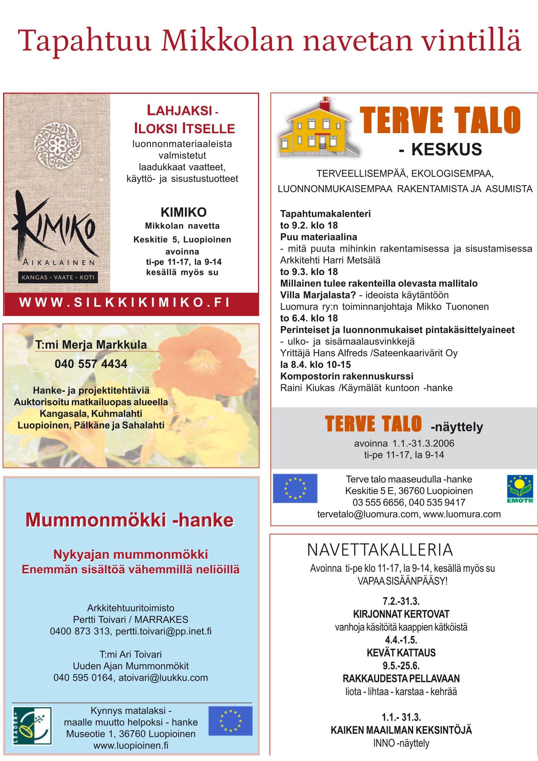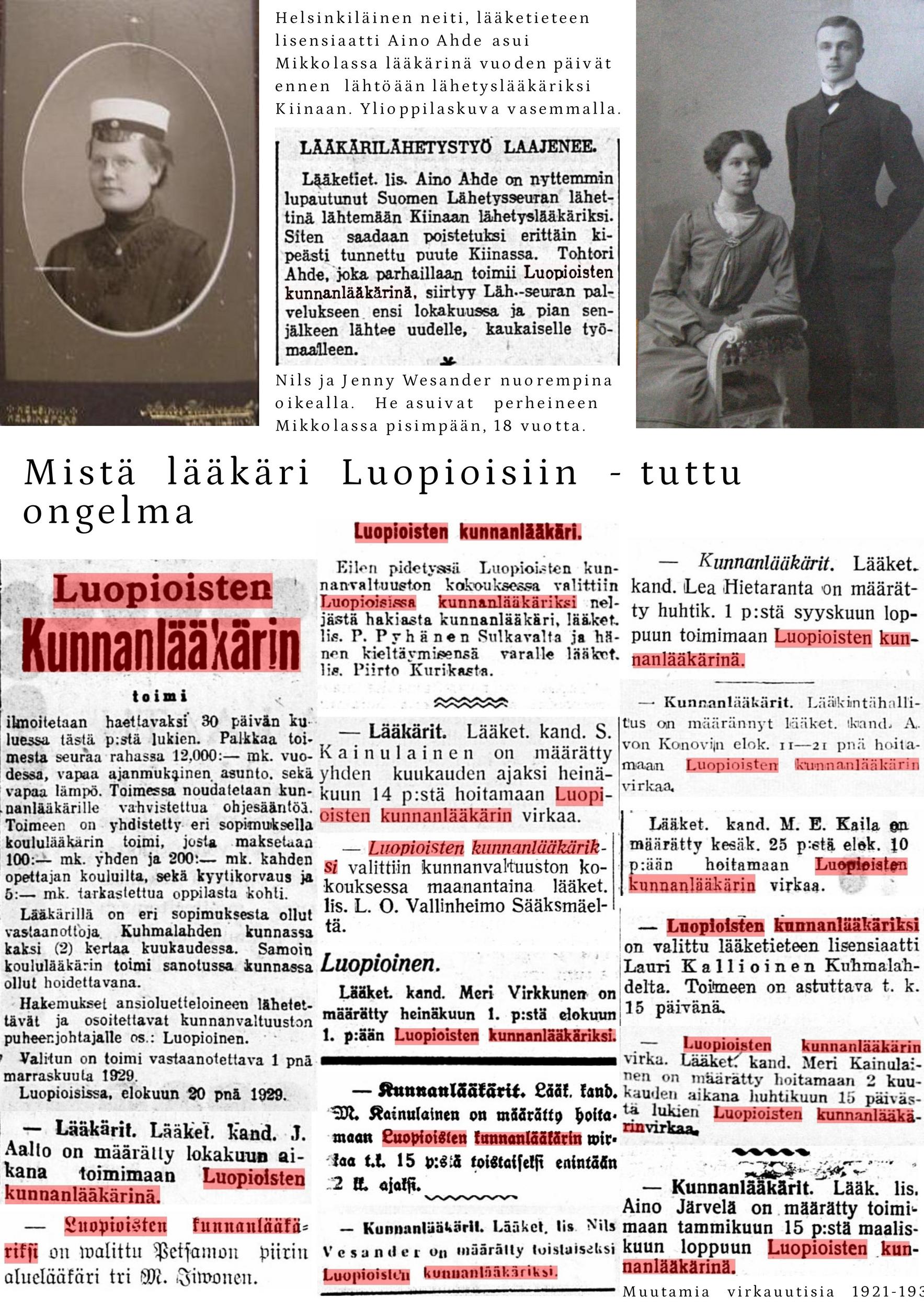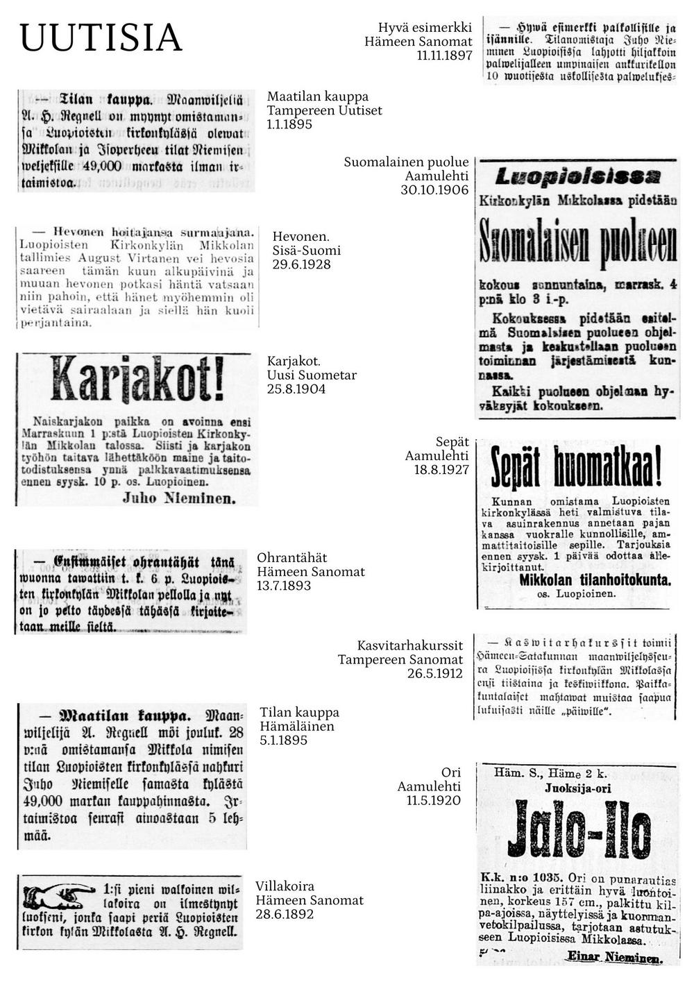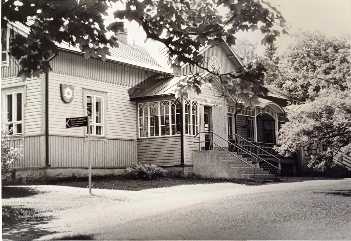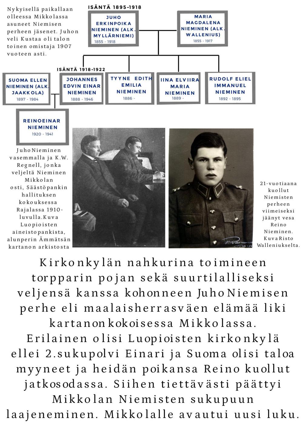 Vuonna 1922 tila myytiin Luopioisten kunnalle. Kunnan omistuksessa Mikkola jatkoi maanviljelystilana. Siellä viljeltiin ruista, kauraa, ohraa, perunaa, pellavaa, rehujuurikasveja, heinää ja vihantarehua ja pidettiin lypsykarjaa. Olipa Mikkolassa oma tiilitehdaskin. Mikkolan tilan nykyinen pääosin pystyhirsinen päärakennus on rakennettu 1800-luvun loppupuolella. Puurakentamisen nikkarityyliset ihanteet saivat näin Luopioisissa paikallisen talonpoikaisen tulkinnan. Päärakennuksen pohjoispuolella maantien varrella sijaitsee vuonna 1915 rakennettu tiilinen jyvämakasiini. Mikkolan päärakennus toimi kunnanlääkärin virka-asuntoja ja vastaanottotiloina vuodesta 1922 vuoteen 1955. Lisäksi rakennuksessa sijaitsivat myös kirjastotilat.