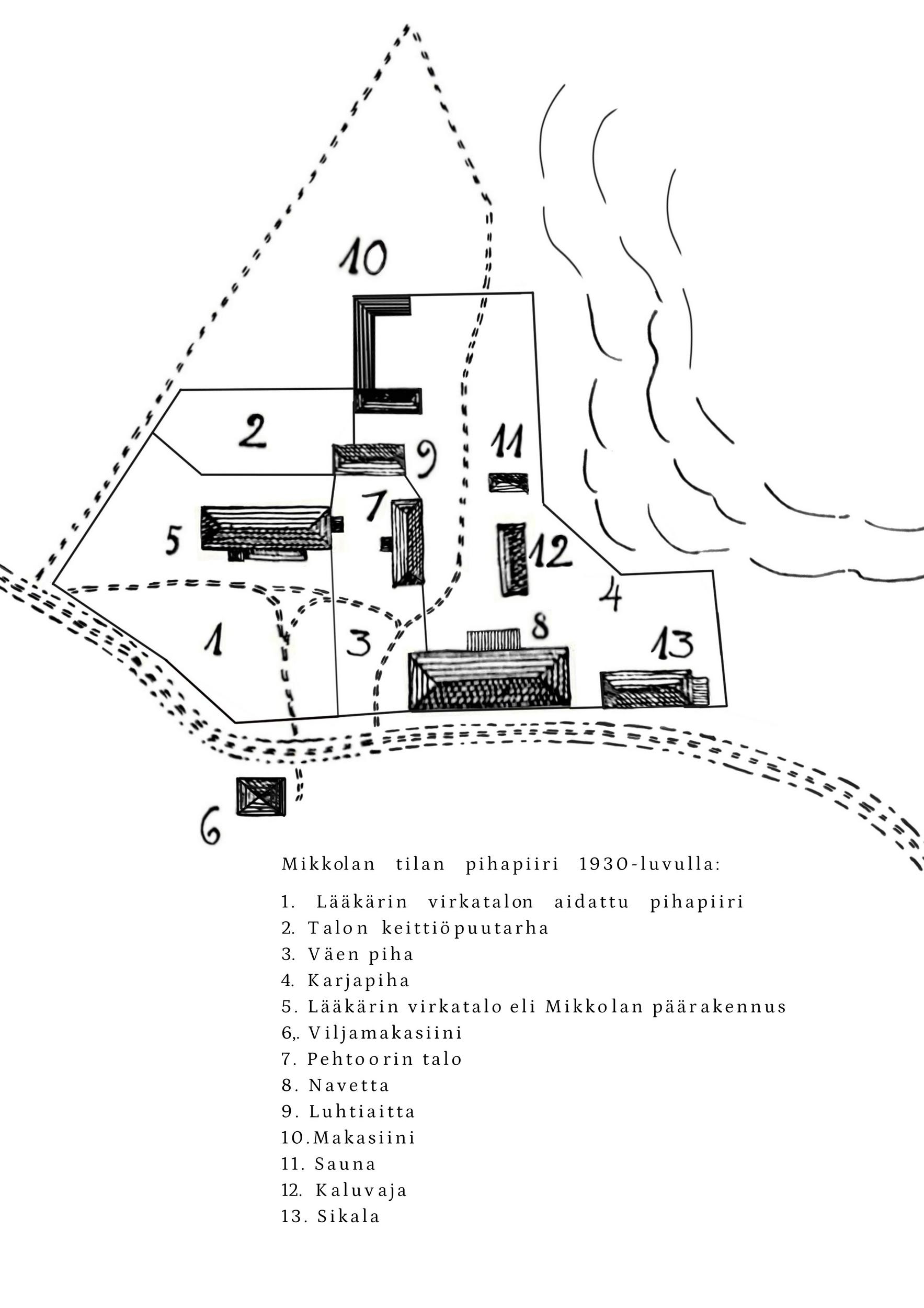 Mikkolan sisääntulopiha on puistomainen ja vehreä. Maatilan aikaiset puut ovat enimmäkseen vaahteroita ja koivuja. Päärakennuksen eteläpuolella on aikoinaan ollut puutarha jossa on ollut mm. runsaasti omenapuita. Puutarhasta on jäljellä muutama omenapuu ja ruusupensas - sekä niitylle levinneet varjoliljat. Pihalle on myöhemmin istutettu jaloja lehti- ja havupuita. Puut on merkitty nimikylteillä arboretumin tapaan. Puistossa kasvaa mm. purppurakuusia, japaninpihtoja, douglaskuusia, visakoivuja, kynäjalavia ja tammia.